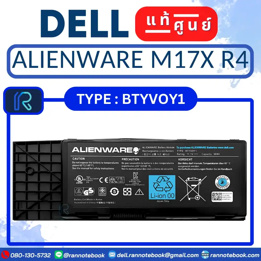 เล่นเกมไม่สะดุด! แบตเตอรี่ Dell Alienware M17X R4 (BTYVOY1) ความจุสูง 90Wh ของแท้จากศูนย์ Dell Thailand ประกัน On-Site Service เคลมถึงบ้าน ส่งฟรี!