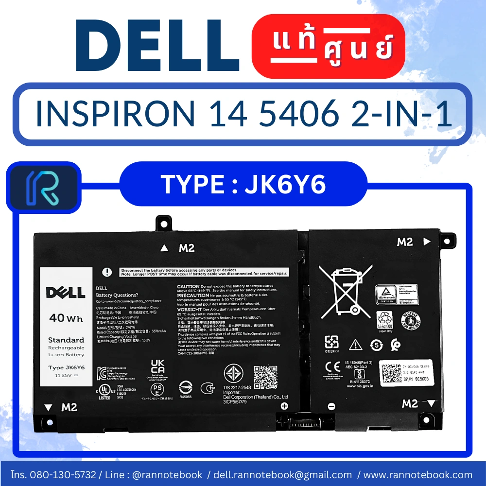 แท้ตรงรุ่น ตรงสเปค โปรโมชั่น พิเศษ Battery Dell Inspiron JK6Y6 มั่นใจคุณภาพ Dell Thailand แก้ปัญหา แบตโน๊ตบุ๊คบวม แบตเตอรี่โน๊ตบุ๊ค ชาร์จไม่เข้า พร้อมรับประกันศูนย์และบริการ On‑Site 🔧 รายละเอียด แบตเตอรี่ Dell Inspiron 14 5406 2in1