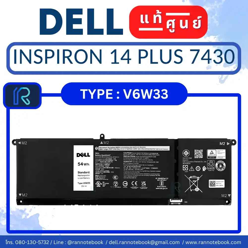 เปลี่ยนแบตเตอรี่โน๊ตบุ๊ค Dell Inspiron 14 Plus 7430 ราคาถูกและคุ้มค่าที่สุด สินค้าเป็นของแท้จากศูนย์ Dell Thailand ประกัน 1 ปี (DP/N:V6W33) ตรงสเปค 100% ความจุ 54Wh